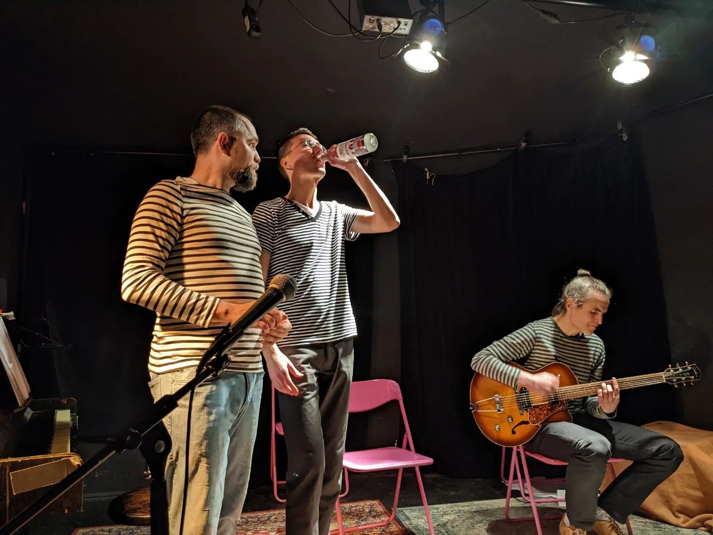 První živá vystoupení na autorských čteních. Práce ve dvojici je přivede ke scénické formě. Jako host (podobně jako u nahrávek) s nimi vystupuje Filip Votava, od roku 2000 i s kytarou a společnými autorskými písničkami.